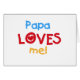 Papa Loves Me T-shirts, cartes, autocollants, sacs de carrosserie, et plus avec le rouge coloré, jaune et bleu texte et le design du coeur. Ces Papa m'aime vêtements et cadeaux feront sourire papa!