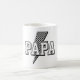 Une tasse blanche frappante avec le mot "Papa" en gras en noir avec un graphique en éclair à damiers. Parfait pour les papas à l'ambiance dynamique et énergique ! | Papa Bold À damiers Lightning Keepsaké Mug, Don de fête du père, Amour de la famille, Amusement de la famille, Plaisir au café, Moment de style dynamique