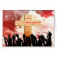 Une carte de Noël pour ton père et ta belle-mère. Une carte de Noël très différente. Des foules qui applaudissent se serrent les mains devant une croix d'or. La croix est inscrite en rouge avec les salutations de Noël et les phrases. Dans l'arrière - plan est un ciel rouge avec des foules tourbillonnantes et des étoiles. Envoyez un message religieux ce Noël avec une carte qui exsumera le bonheur.