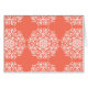 Ce mandala blanc est posé sur une papaye orange ou un arrière - plan saumon. Les couleurs sont claires et chaudes. Partie de la collection Pras Mandala.