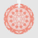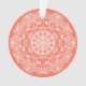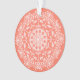 Ce mandala blanc est posé sur un arrière - plan de papaye orange ou saumon. Les couleurs sont claires et chaudes. Une partie de la collection Gwias Mandala.