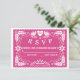 Papel picado inséparables mariage rose chaud RSVP réponse/réponse carte avec deux inséparables et un coeur d'amour avec le mot amour ainsi que des fleurs, feuilles et petits points. Cette nature inspiré art folklorique mexicain style floral mariage modèle design fait partie d'un ensemble ou d'une collection mariage et est entièrement personnalisable. Notez qu'il ne s'agit pas vraiment de papier découpé laser juste des images imprimées. Couleurs : fuchsia rose chaud magenta et blanc