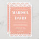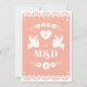 Une belle faire-part de mariage en papel picado sur un arrière - plan rose vif. Le dos est décoré d'un dessin de colombe avec les initiales du couple. Parfait pour un mariage mexicain traditionnel ou moderne.