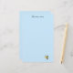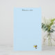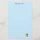 Une abeille travailleuse de bureau clairement stressée vole à peine, tenant une serviette et laissant une traînée de papiers derrière elle. La couleur de fond peut être personnalisée.