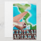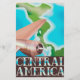 Poster de vol vintage d'Amérique centrale, avec une carte de la région une aile d'avion propulseur et un moteur en vol au-dessus de la région.