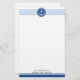 Papeterie comportant une ancre blanche à l'intérieur d'un emblème bleu avec la frontière blanche. Au dessus sont trois rayures bleu-clair et au fond une frontière bleu-foncé. Nom personnalisable.