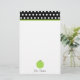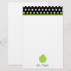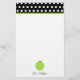 Papeterie pour des professeurs comportant une frontière de noir avec le pois blanc et l'équilibre vert en haut. Illustration d'une pomme verte en bas. Personnalisez avec votre nom sous la pomme. Articles assortis Look for chez Paperie de Jill.