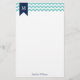 Papeterie Aqua Chevrons Motif et Monogramme bleu