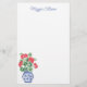Papeterie Aquarelle Chinoiserie Vase des Geraniums rouges