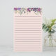 Feuilles mignons et girly violet et rose floral et sauge vert sur papier à lettres personnel rose avec lignes.