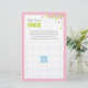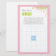 Cette carte Baby Bingo est une activité amusante pour tout Baby shower. Cette carte est offerte dans un jeu de couleurs roses, avec des confettis colorés. L'ajout parfait à un Baby shower ou une fête de Baby Sprinkle! Trouver d'autres jeux et objets correspondants sur www.zazzle.com/mypartydesign