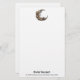 Papier papeterie avec une belle illustration. Un visage féminin dans la lune entouré de fleurs.