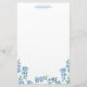 Belle papeterie florale avec fleurs bleues oubliées pas au fond du papier. Personnalisez la papeterie avec votre nom en lettres bleues élégantes au-dessus de vos initiales dans un magnifique script bleu tourbillonnant.