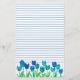Un joli papier à lettres bleu orné d'un jardin de fleurs de tulipes peint à la main dans plusieurs tons de bleu aquarelle et de feuilles vert printemps. Une jolie papeterie fleurie pour écrire des lettres, des listes, du journalisme ou un joli cadeau pour tous ceux qui aiment les fleurs!