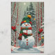 Bonhomme de neige dans la forêt, dans les tons rouge et vert, parfait pour les fêtes de fin d'année