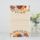 Elégant bordeaux, orange et rose aquarelle floral et verdure sur papier à lettres à la ligne crème.
