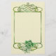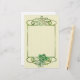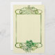 Jolie papeterie à thème irlandais avec un joli bouquet de Shamrocks attachés avec ruban assorti sur arrière - plan crème légèrement texturé avec une bordure verte tourbée gracieusement.