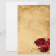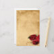 Elégant design de papeterie mariage marron caramel vintage avec des rouleaux d'angle décoratifs en haut et en bas avec une photo de trois roses rouges dans le coin inférieur. On donne à l'arrière - plan une application de grunge texturée pour un look de papier ancien. Ce design est offert en plusieurs arrière - plans prêts à l'emploi. Ce design est également offert sur de nombreux autres produits de papeterie pour répondre à tous vos besoins en mariage.