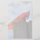 Papier à lettres avec la photo d'un cardinal rouge joli debout sur un moignon en bois.
