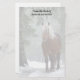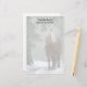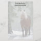 Papier à lettres avec photo d'un cheval brun avec une longue crinière blanche. Debout dans une forêt avec des flocons de neige qui tombent tout autour.