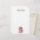 Papier à lettres avec une adorable image d'un hibou assis dans une tasse à café. Des coeurs se balançant et un seul rose placé au fond de la tasse.
