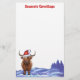 Animal Parade Festive Highland Cow Cadeaux et accessoires de Noël présente notre oeuvre amusante d'une jolie vache Highland décorée dans un chapeau de Santa rouge, debout dans un paysage enneigé contre un ciel étoilé bleu foncé texturé peint par notre talentueux illustrateur pour enfants, Traci Van Wagoner. Sur le dos de beaucoup de ces amusants safari animal cadeau, vous trouverez aussi notre vache fantasque Highland du dos portant une couronne de saint avec un arc de Noël rouge. Notre art festif Highland Cow fait des cadeaux uniques pour les amateurs de Noël, les amateurs de Highland Cow, les amoureux des animaux et les amateurs d'art mignon sur votre liste de cadeaux cette saison de fêtes.
