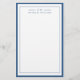 Classic Navy Blue Two Border Monogram Lined Stationery Paper