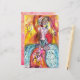 Coloré, fantaisiste, vibrant caractère de mascarade vénitienne. Une femme blonde sophistiquée est assise avec un masque à plumes à la main avec des tissus brillants d'or, argent, bleu, turquoise d'un costume de boule masqué baroque avec des plumes et des éclats floraux en blanc, rose, jaune.Aquarelle peinture avec feuille dorée et couleurs irisées. Parcourir un autre<a href="http://www.zazzle.com/elegant+businessca href="">()