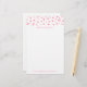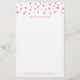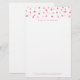 Ce papier à lettres doux présente des cœurs éparpillés en confettis de différentes nuances de rose sur un fond blanc.