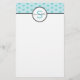 motif bleu et blanc à coquillages d'Aqua avec nom et monogramme.