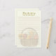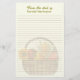 Papeterie à thème agricole doublée. Conception de fond de panier de légumes avec des lignes pour composer facilement une note manuscrite. Couleur écru avec deux lignes de texte en haut. "De la part de - avec nom" en écriture et en police imprimée.