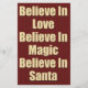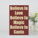 Joli Noël en disant sur le Père Noël dans la crème et le texte rouge foncé avec des flocons de neige et un arrière - plan de papier rouge. Croyez en l'amour, croyez en la magie, croyez en Père Noël.