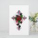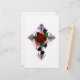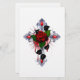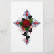Croix d'argent avec une rose rouge et des feuilles noirs sur un arrière - plan blanc.