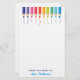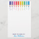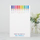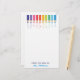 Belle ligne de crayons colorés laissant un joli crâne coloré éparpillé sur la page dans de jolies couleurs arc-en-ciel pour décorer le dessus de ce papier fixe personnalisé pour une école primaire ou un professeur d'art. Customisez avec votre nom ou autre texte au bas du bloc-notes en violet et bleu.