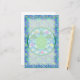 Une tortue de mer verte avec la coquille modelée, contre une eau bleue/motif de vague, avec plusieurs poissons colorés. Conception circulaire avec une frontière verte. Papeterie sans doublure.