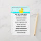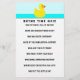 Activité de jeu de baby shower unique, avec une illustration de canard en caoutchouc mignonne, un quiz sur les comptines de la Mère l'Oye, et un espace pour inclure des conseils de parentalité.