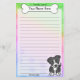 Papeterie de Kawaii border collie d'amusement avec une race noire et blanche de chien de bande dessinée dans le coin inférieur droit. La partie supérieure peut être immédiatement personnalisée avec votre nom à l'intérieur du grand os de chienchien. L'arrière - plan de frontière et de papier sont un joli arc-en-ciel.
