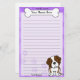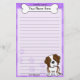 Papeterie de Kawaii St Bernard d'amusement avec une race de chien de bande dessinée dans le coin inférieur droit. La partie supérieure peut être immédiatement personnalisée avec votre nom à l'intérieur du grand os de chienchien. L'arrière - plan de frontière et de papier sont pourpre.