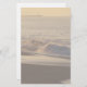 Une plage à l'aube avec une jetée à l'arrière-plan est sur cette papeterie.