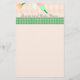 Cette jolie papeterie est parfaite pour n'importe quelle correspondance. Elle a des fleurs sur le dessus et un arrière - plan de pêche sur le fond séparé par un ruban vert et par blanc vérifié. Le texte est personnalisable de chaque manière.