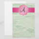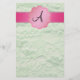 Le motif vert de dentelle, le cercle rose de feston de coeur et la rayure de diamants (diamants non vrais de faux) et la lettre roses de monogramme changent en n'importe quelle lettre a, b, c, d, e, f, g, h, I, j, k, l, m, n, o, p, q, r, s, t, u, v, W, x, y, z