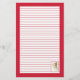Un joli papier à papier à lettres rouge décoré d'une poule douce dessinée avec stylo et encre et crayon coloré.