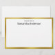 Du bureau de est près du haut. Texte noir supplémentaire pour votre nom est sur la ligne suivante. Il y a une bordure élégante en faux or (pas en feuille d'or).