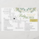 Ce baby shower de mots croisés prêts à l'emploi sera certainement un succès et présente une aquarelle douce des feuilles d'eucalyptus (vert et or) avec une police audacieuse orthographiant le baby shower mot. Les autres textes sont faciles à mettre à jour.