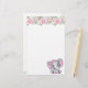 Papier à papier à lettres avec une jolie illustration d'aquarelle d'éléphant rose. Elle a de jolies oreilles de pois roses et blancs et un joli ruban rose au-dessus de sa tête. Le sommet est décoré d'un beau bouquet de roses.