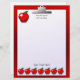 Graphique d'un porte - bloc avec du papier et des pommes rouges par l'artiste-concepteur Charmaine Paulson sur la papeterie Teacher Letterhead. La papeterie a des modèles texte pour votre personnalisation.