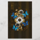 Composition de l'horloge ronde steampunk avec cadran romain noir, décoré avec des engrenages or et laiton, papillons Morpho bleu et lentilles endommagées sur arrière - plan rayé brun. Style Steampunk.