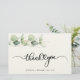Budget Eucalyptus Lettered Mariage Merci Note Card vous pouvez facilement customiser avec vos détails. Le script "merci" avec un coeur d'amour est défini cependant, vous pouvez changer l'arrière - plan de la carte ainsi que le texte et les couleurs. Ajoutez également votre message personnalisé au verso.