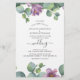 Script moderne Eucalyptus Faire-part de mariage aquarelle avec typographie moderne, feuilles violet et vert et mise en page que vous pouvez facilement modifier en cliquant sur le bouton "Personnaliser"