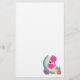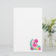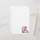 Papier à lettres avec une jolie illustration d'un flamant rose avec quelques pastèques et ananas. Couleurs rose et vert. L'été et tropical.